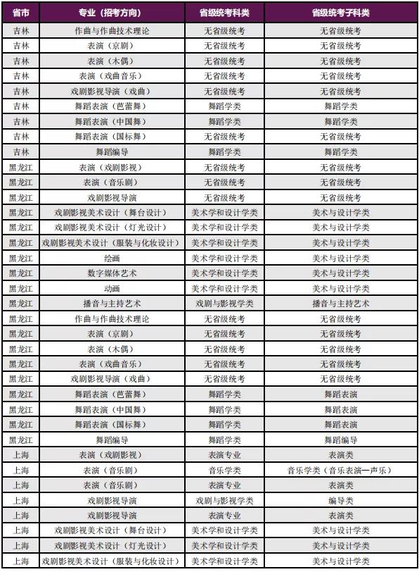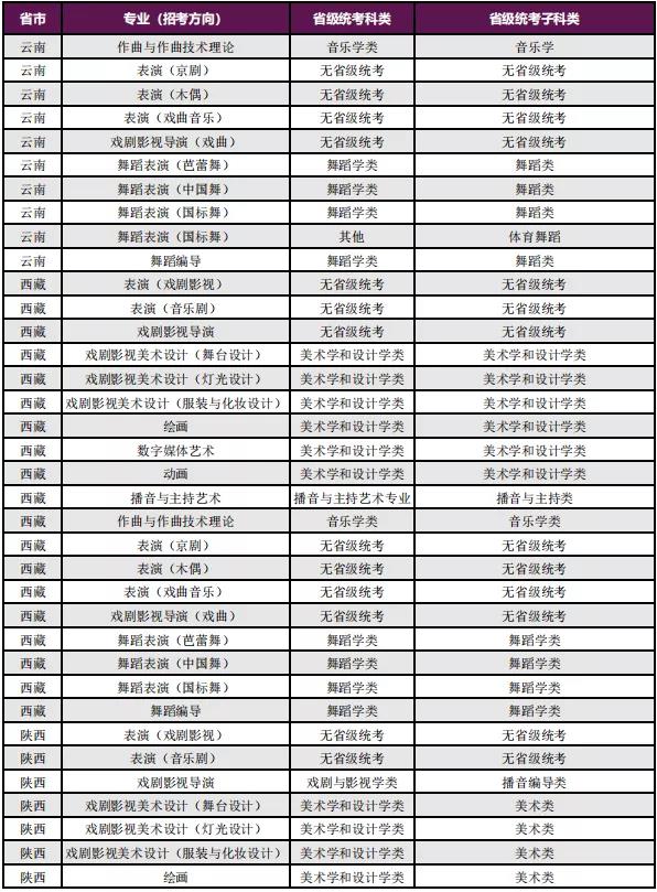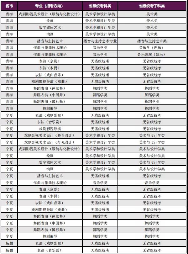 二、艺术类统考专业