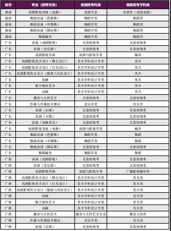 1. 2022年我校“普通类本科第一批次”招生专业不设校考,无需参加省级统考,编制分省招生计划,拟招生专业包括:戏剧影视文学、戏剧学、戏剧教育、艺术管理、广播电视编导、影视摄影与制作。