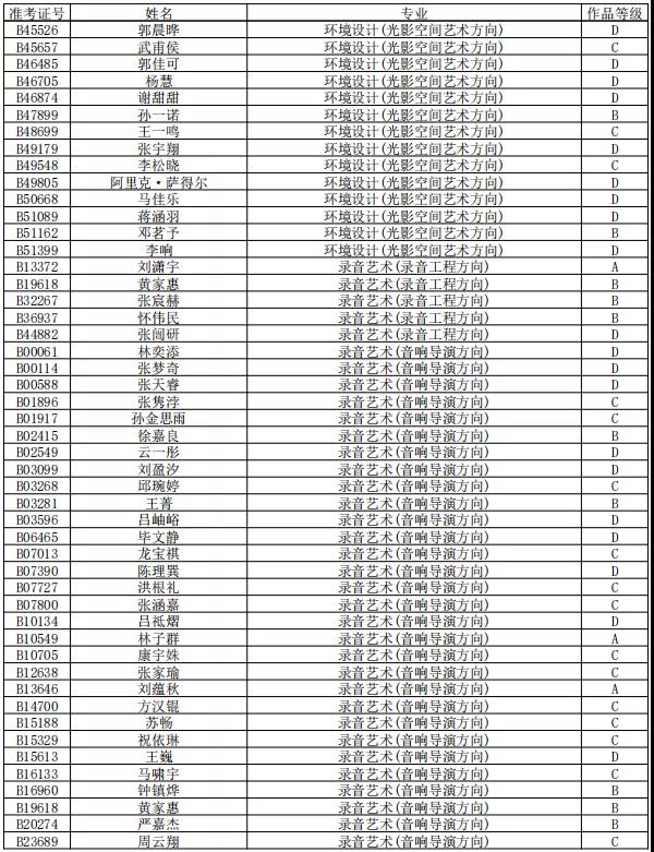 中国传媒大学2022年艺术类“绿色通道”作品评定结果公示