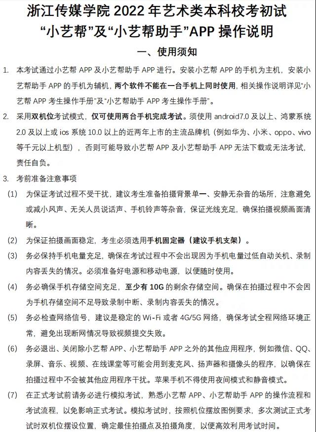 浙江传媒学院2022年本科专业初试考试须知&考试操作说明