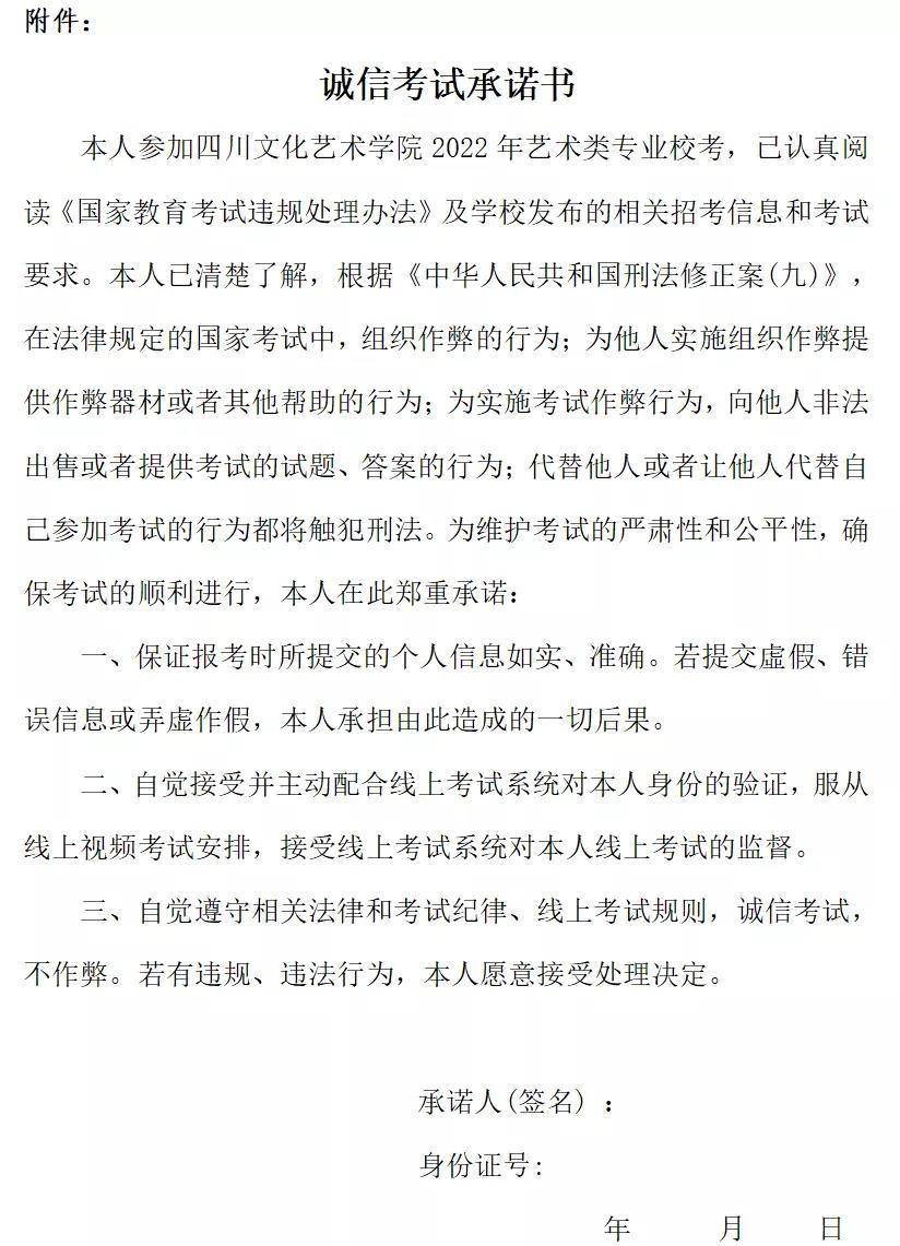 考生在正式考试前务必认真阅读《四川文化艺术学院2022年省外艺术类专业校考线上考试须知》。了解考试信息和要求,不按要求考试而导致考试失败或取消考试成绩的,后果由考生本人承担。