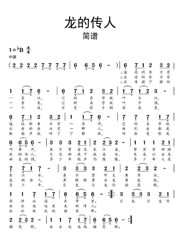 龙的传人简谱