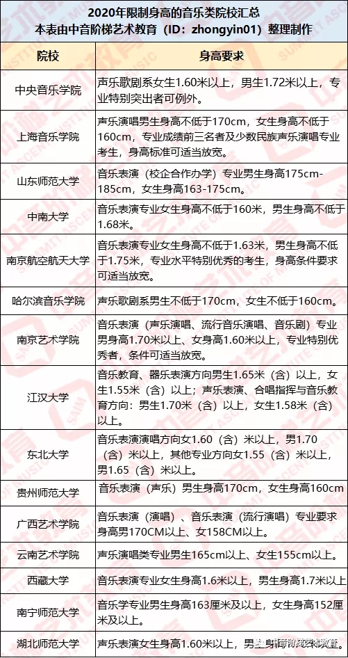 艺考须知|高校音乐生身高要求汇总,你达标了吗?