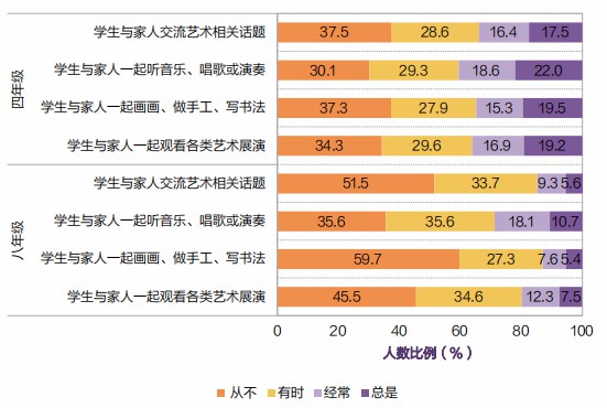 不仅如此,调查发现,家庭艺术氛围较好的学生,艺术成绩相对较高。