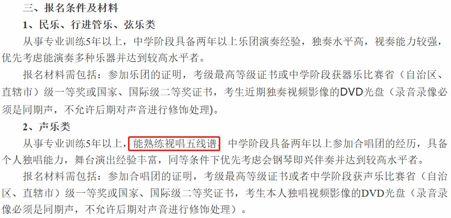 部分高校在高水平艺术团招生中,也要求考生有视唱能力。