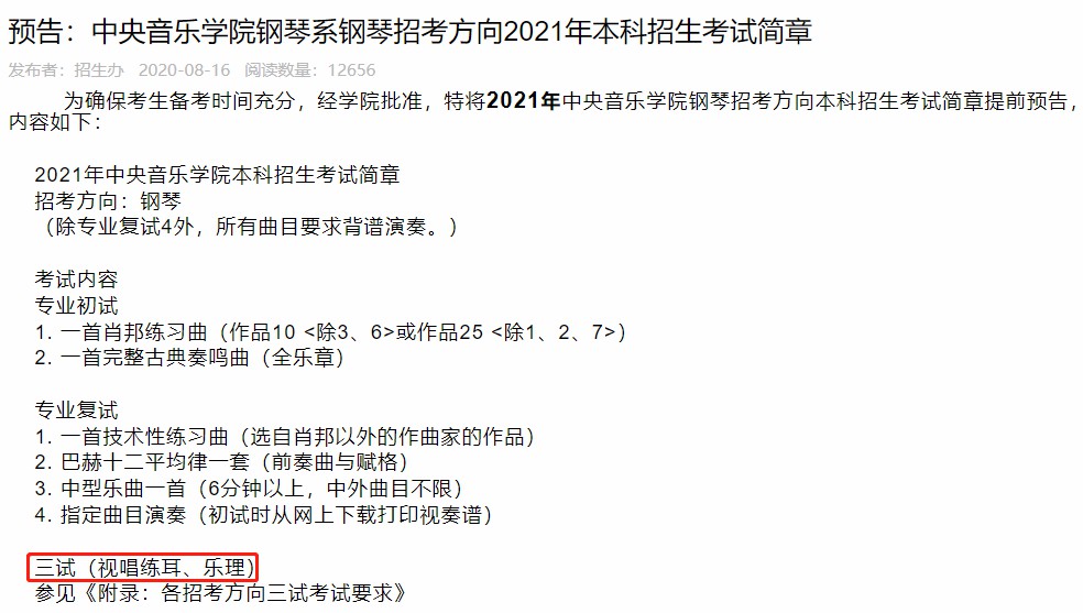 中央音乐学院、中国音乐学院等院校的音乐校考中,对视唱练耳、乐理也有不同程度的要求,为内容。