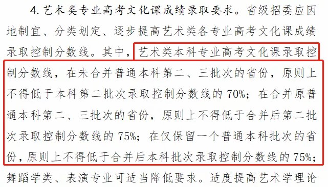 发布《关于做好2021年普通高校部分特殊类型招生工作的通知》明确:艺术类本科控制线提高至70或75。
