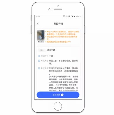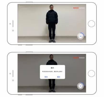 5.考试视频只能在 APP 中拍摄,无法使用各类美颜相机APP。录像中不能变焦、不能暂停。录制的视频不能编辑。部分考试科目有时间限制,达到限制时间后录像自动停止。