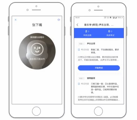 (1)点击[开始考试]后,首先进行活体识别,请根据提示进行点头、摇头、张嘴、眨眼等动作。