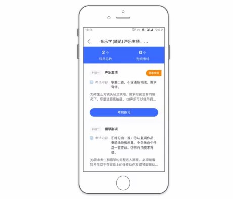 1.考生在手机上安装艺术升 APP,利用手机内置摄像头和麦克风录像和拍照。所有录像拍照、上传材料等操作均须在 APP 中进行,其他设备拍摄或使用手机上其他 APP 拍摄的视频和图片均无法作为考试材料提交。