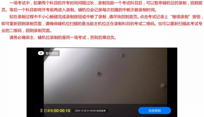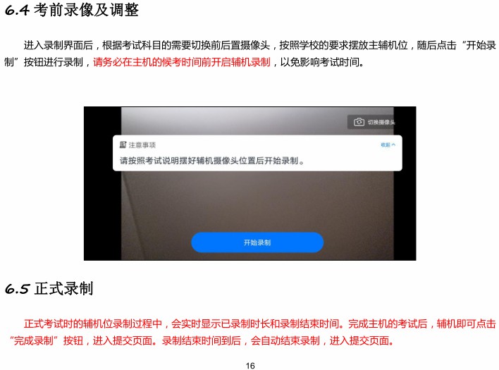 (五)所有科目视频录制均采用双机位,对考生及考试环境同时进行录制。考生须准备两台手机,均应有不少于5G的剩余存储空间,视频录制设备仅限手机,不得使用其他电子设备。主机位、辅机位所录视频均为考试评审依据,同等重要,请务必全部成功上传。为稳定拍摄,建议考生采用手机支架等辅助设备进行拍摄。