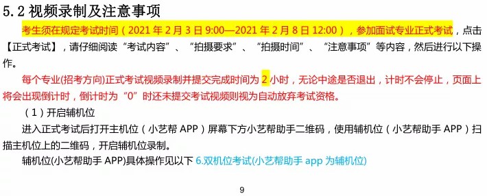 (三)正式视频考试限时2小时。考生须在2小时内完成考试视频录制并提交所报专业所有考试科目的视频,否则系统将自动视为考试失败。一旦进入正式考试,倒计时随即开始,考生无论中途是否退出,计时不会停止。