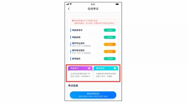 (二)正式视频考试期间无模拟、无考前练习,考生必须在模拟考期内对所有考试科目进行考前练习(考前练习不限次数),必须参加不少于1次的模拟考(模拟考限录3次),练习考试操作,熟悉考试流程,演练并确定正式视频考试时机位摆放及就座位置。