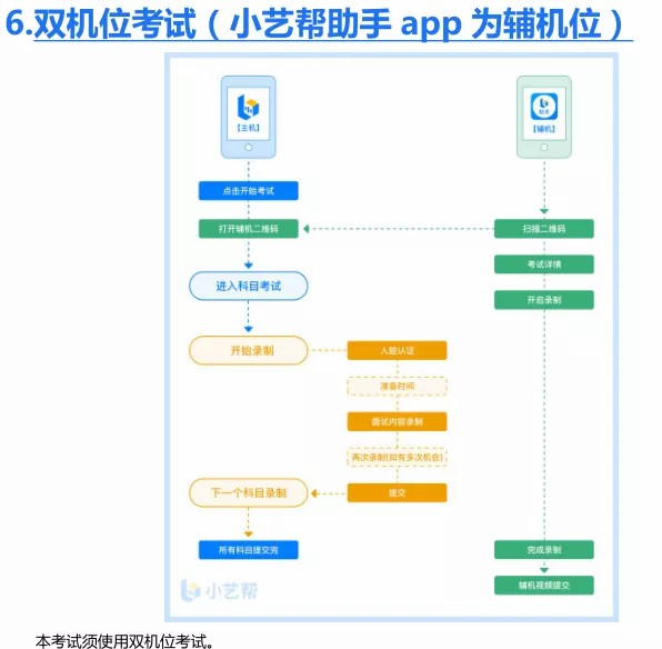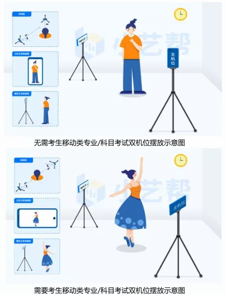 沈阳音乐学院所有科目视频录制均采用双机位,所以需准备两个手机。一个手机作为主机位下载小艺帮APP,另一个手机作为辅机位下载小艺帮助手APP,建议考生采用手机支架等辅助设备进行拍摄。