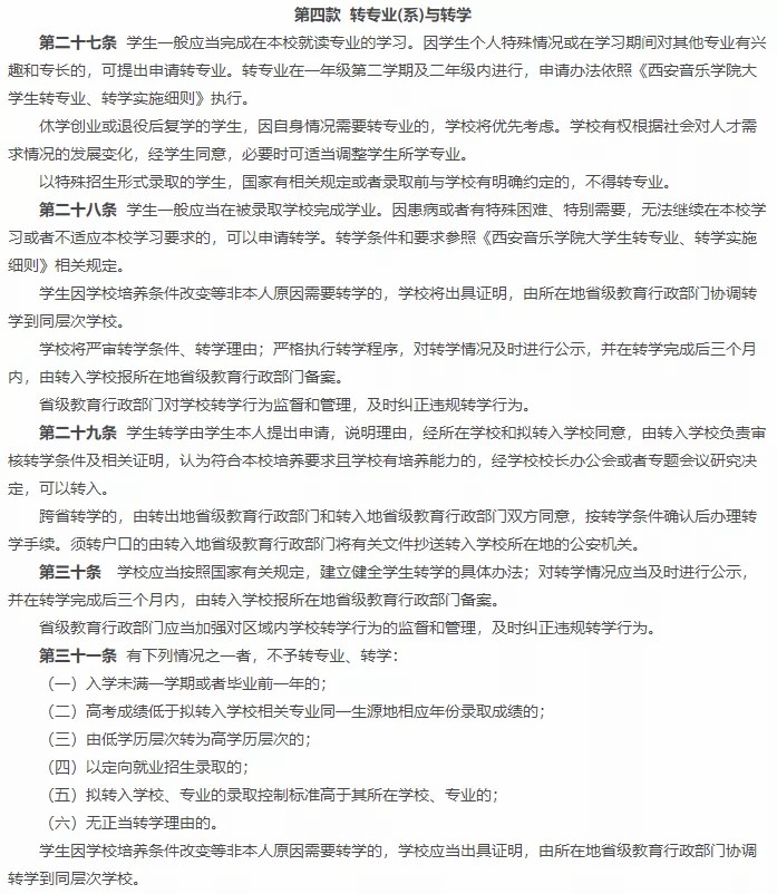 (4)以特殊招生形式录取的学生,国家有相关规定或者录取前与学院有明确约定的,不得转系或转专业。
