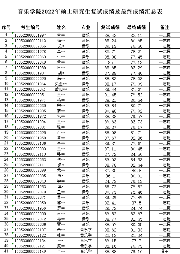 现将中央民族大学音乐学院2022年硕士研究生招生复试成绩及最终成绩(见附件)公示