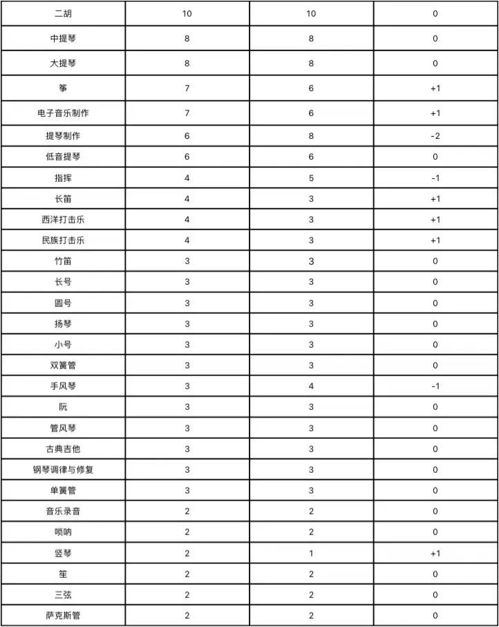 小音以音乐学、音乐教育、钢琴、声乐、二胡、小提琴专业为例,为大家对比出专业考试内容变化。