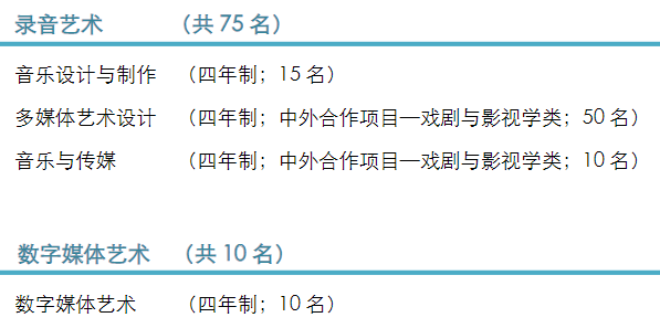 招收音乐设计与制作、音乐与传媒、多媒体艺术设计专业。