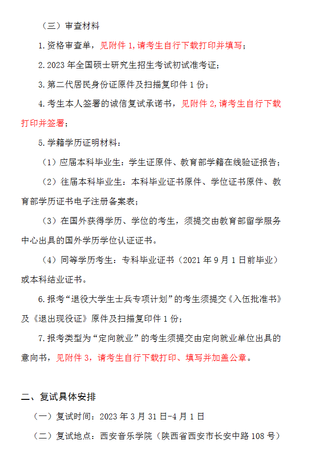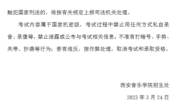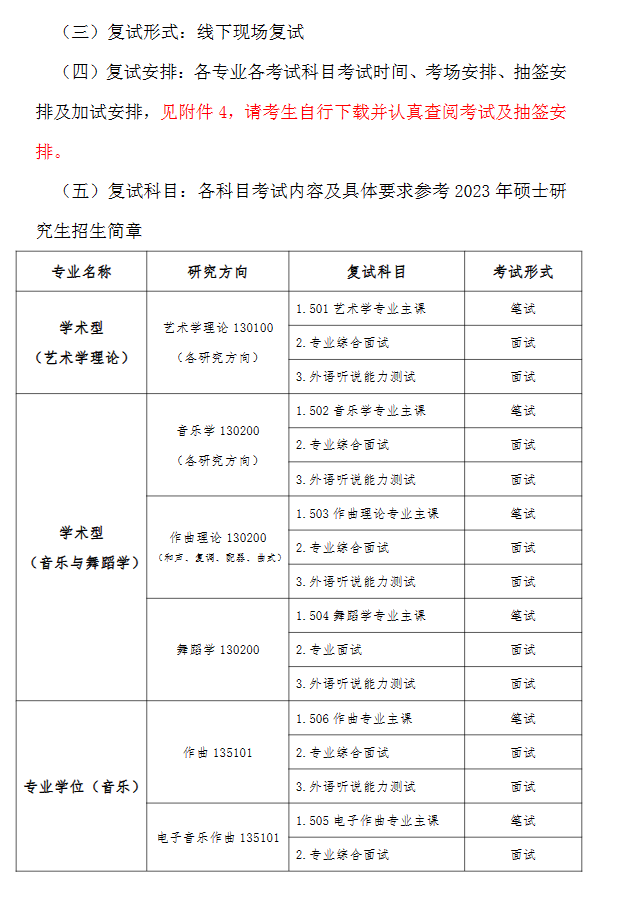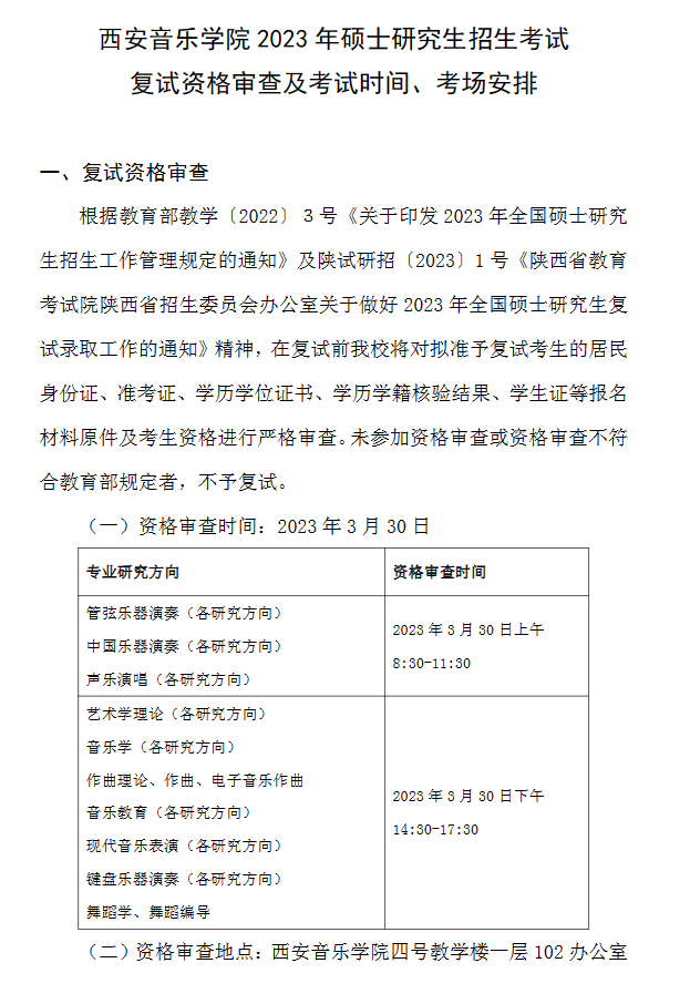 西安音乐学院2023年硕士研究生复试资格审查及考试时间、考场安排