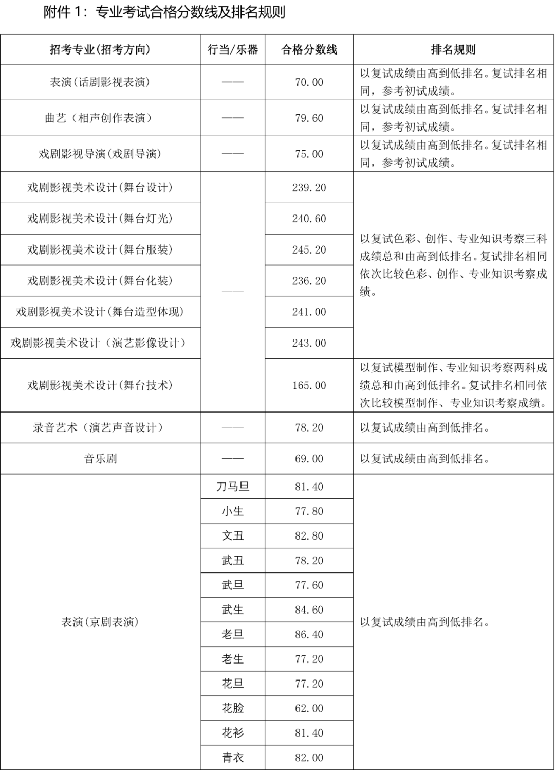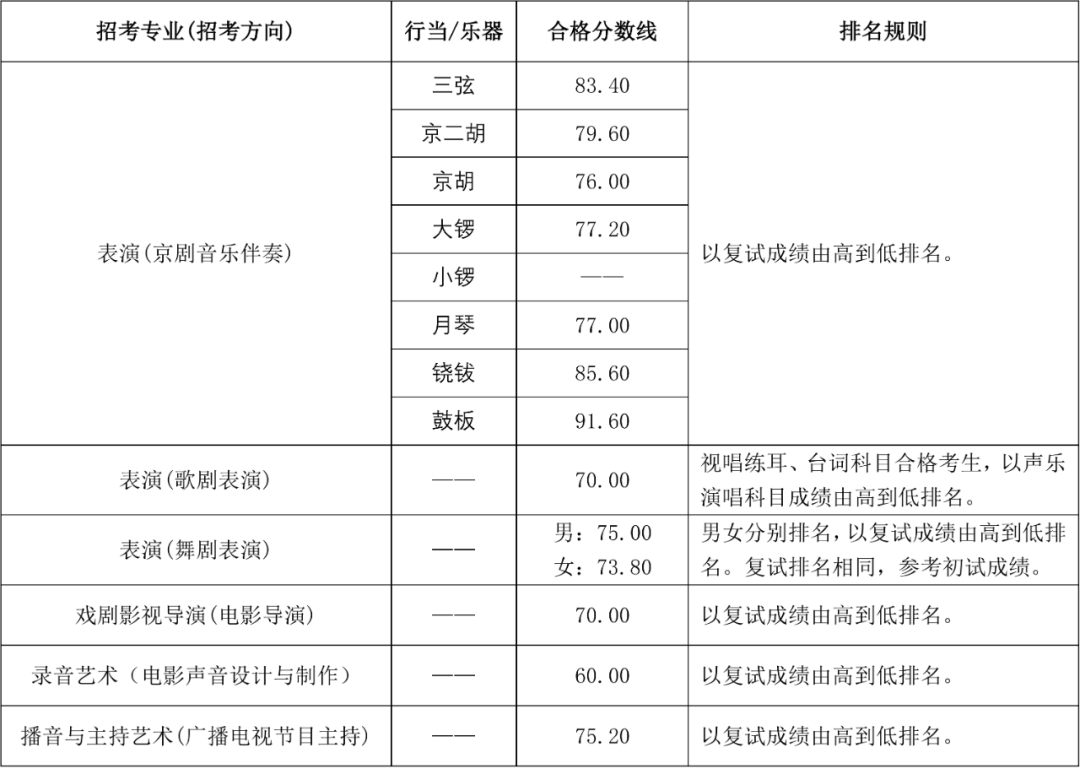 二、《2023年本科招生专业考试合格名单公示表》公示期限为自发布之日起7天,各专业(招考方向)合格分数线及排名规则见附件1。