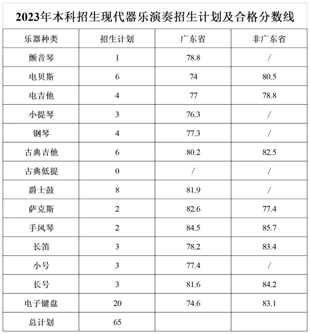 星海音乐学院2023年本科招生考试专业合格名单&专业合格分数线