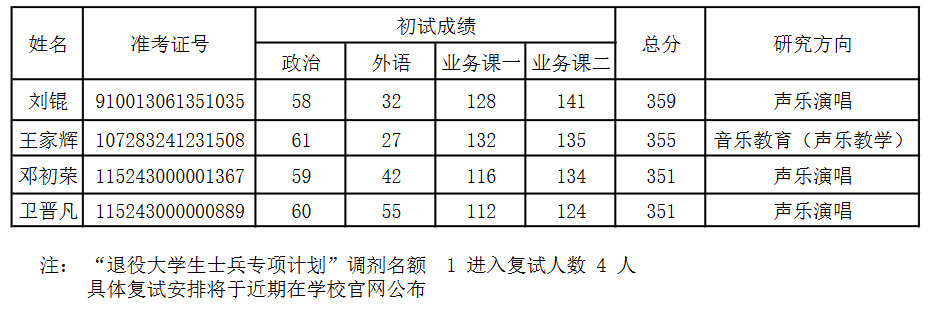 天津音乐学院2023年研究生招生考试进入复试调剂考生名单