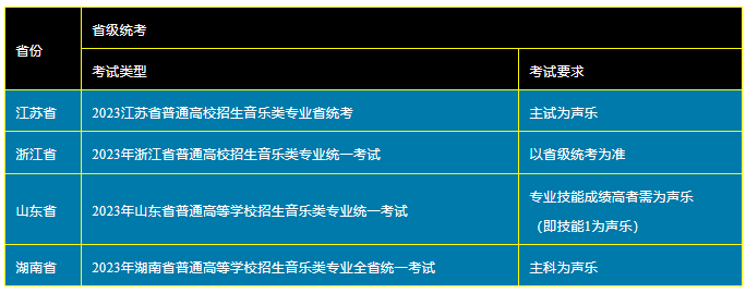 (4)使用省级统考成绩作为专业考试成绩,各省级专业统考要求如下: