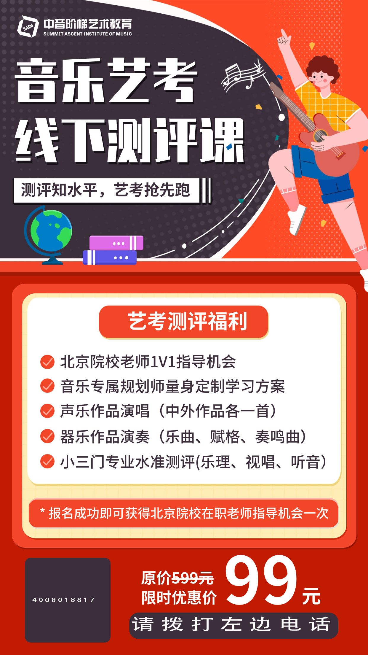 推出【音乐艺考线下测评课】,扫码报名即可获得北京院校老师1V1面对面指导机会,声乐+器乐+小三门测评均包含在内↓↓↓赶快长按识别下方二维码立即报名领取北京院校老师指导名额吧▼ytN音乐培训_音乐艺考培训学校-