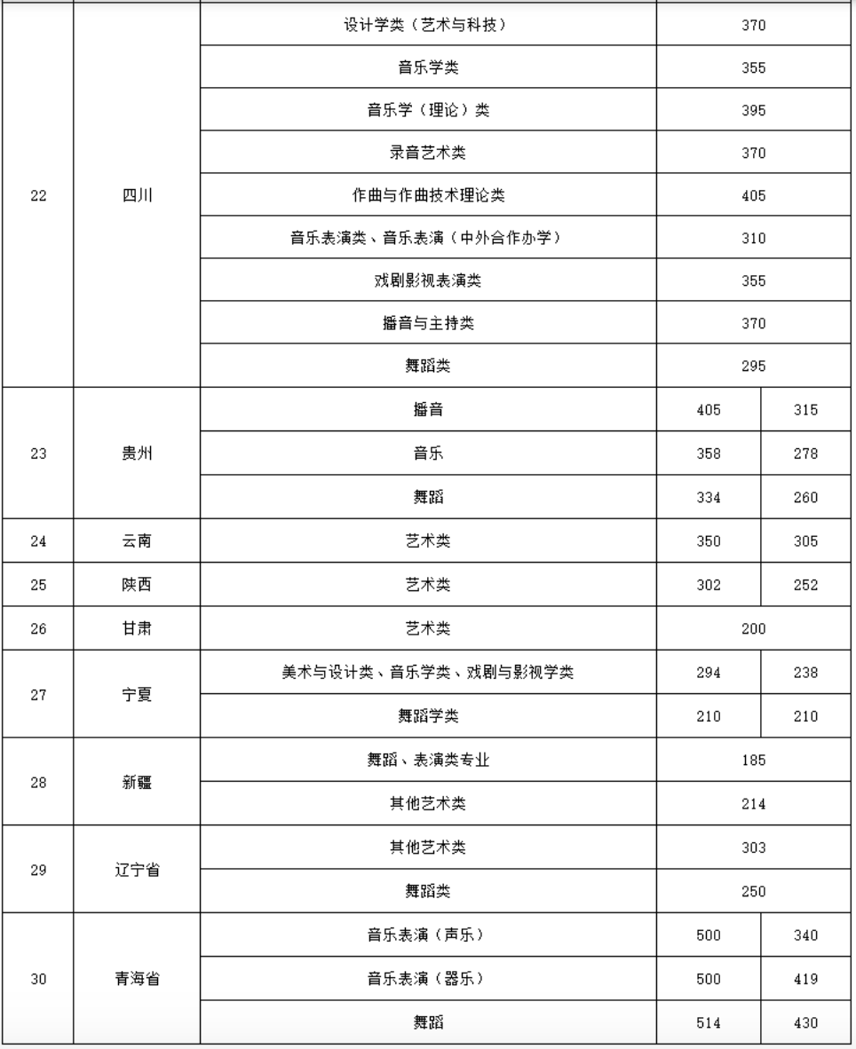 最近有一些院校发布了各省统考的子科目对照表,已经是确定要组织校考了。所以我这边就对这几所院校的录取分数线进行了一个统计。这几所院校分别是:中国音乐学院、中央音乐学院、上海音乐学院、星海音乐学院、浙江音乐学院、沈阳音乐学院、西安音乐学院、天津音乐学院、沈阳音乐学院、哈尔滨音乐学院。