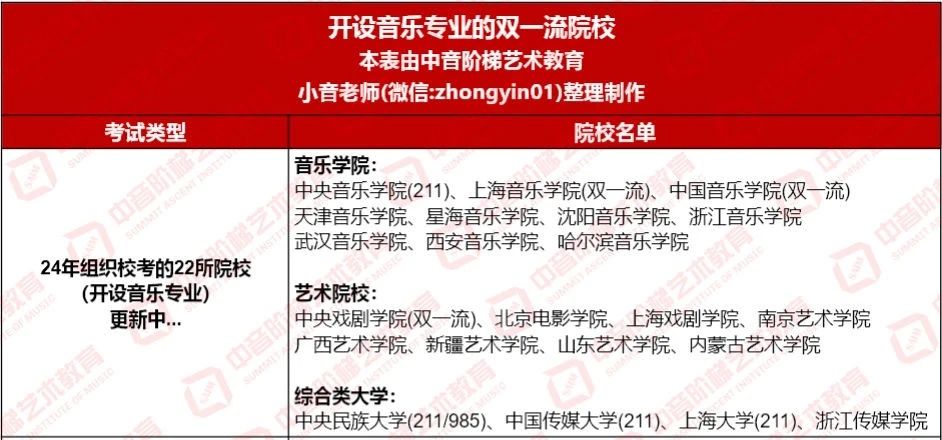 综上,如果你的文化课一般,专业水平很高,那你一定要参加校考,尤其是采用文过专排录取方式的音乐表演等专业,充分发挥专业优势;如果你的文化一般,专业也一般的话可以走校考采用综合分录取的专业。承认统考的985/211/双一流大学,不仅对音乐生的文化课要求高,招生人数少、考学竞争激烈,而且在院系方向的选择上比较单一、专业精准也无法与组织校考的音乐类艺术院校相比,不利于音乐生在未来专业方向上的发展。