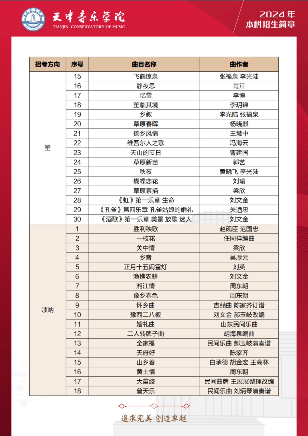 第三十,24年天音扩增音乐表演多个乐器种类的考试曲目库,包括:管子、笙、唢呐、古琴、古筝、柳琴、琵琶、阮、三弦、扬琴、板胡、二胡、民族打击乐等多个乐器。