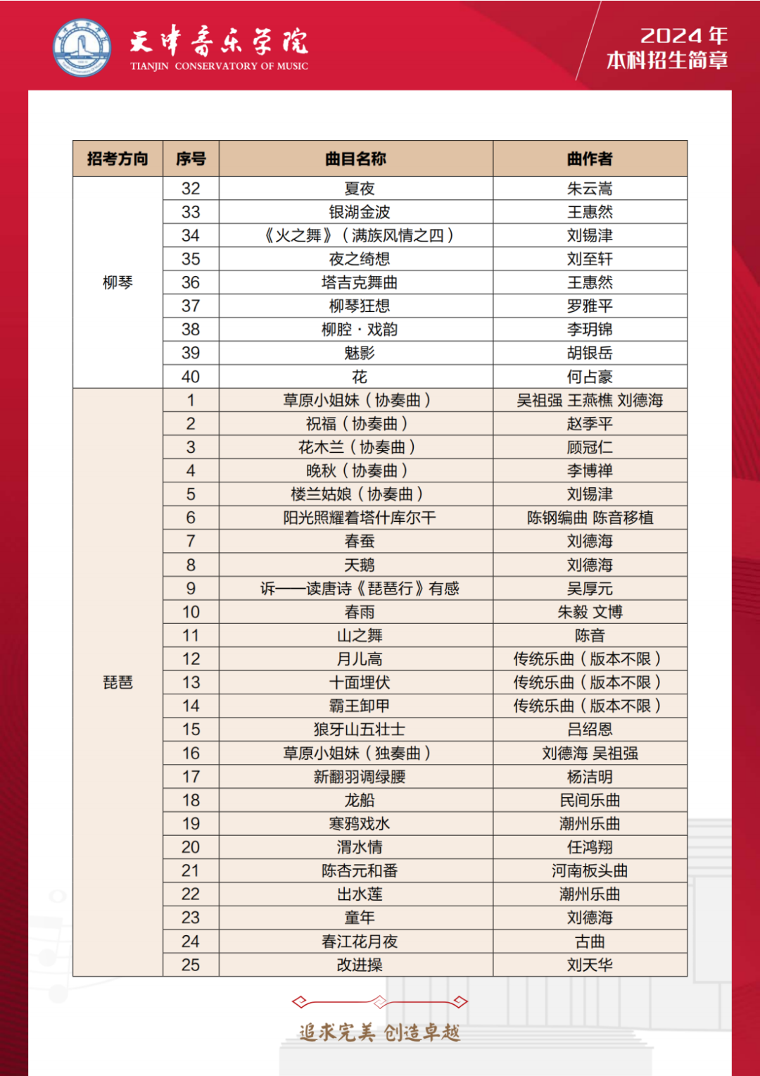 第十四,24年开始,天津音乐学院不再允许专业之间调剂,也就是说录取人数不够的专业不再接受其他专业调剂,这就要求考生提升自身的专业竞争力,才能在校考竞争中脱颖而出。
