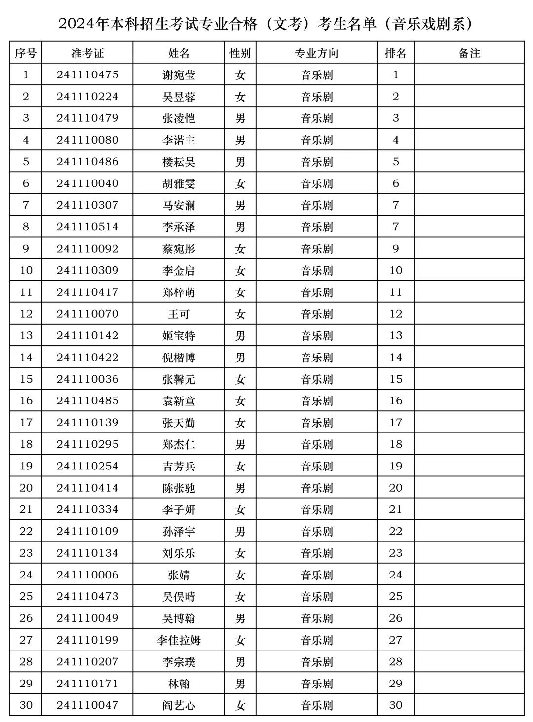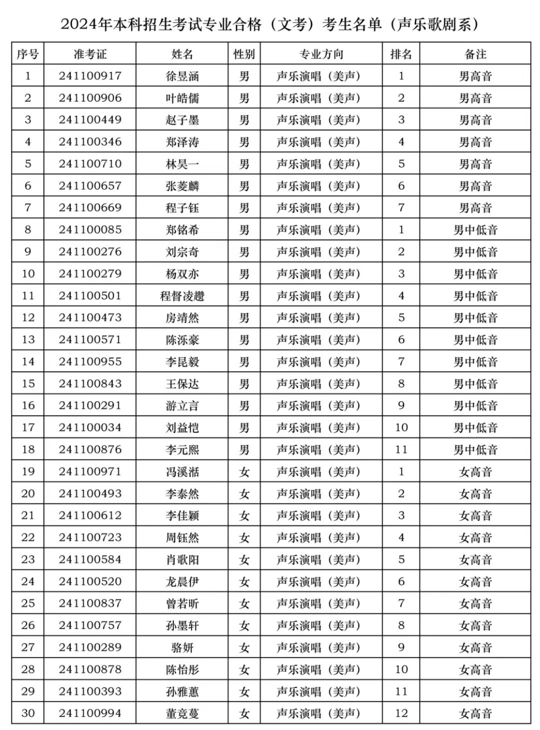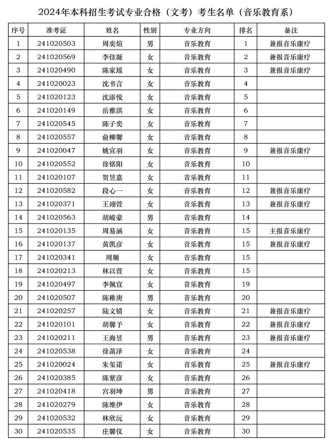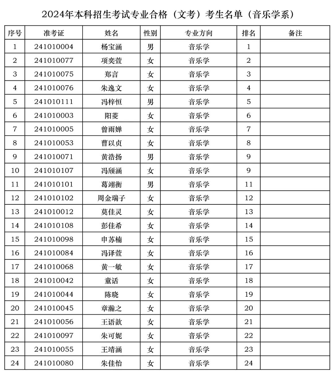 上海音乐学院2024年本科招生考试专业合格(文考)考生名单发布