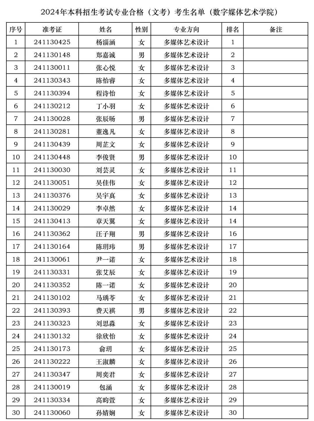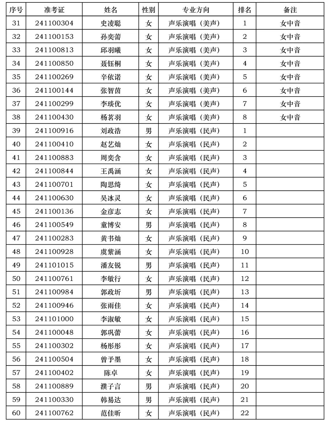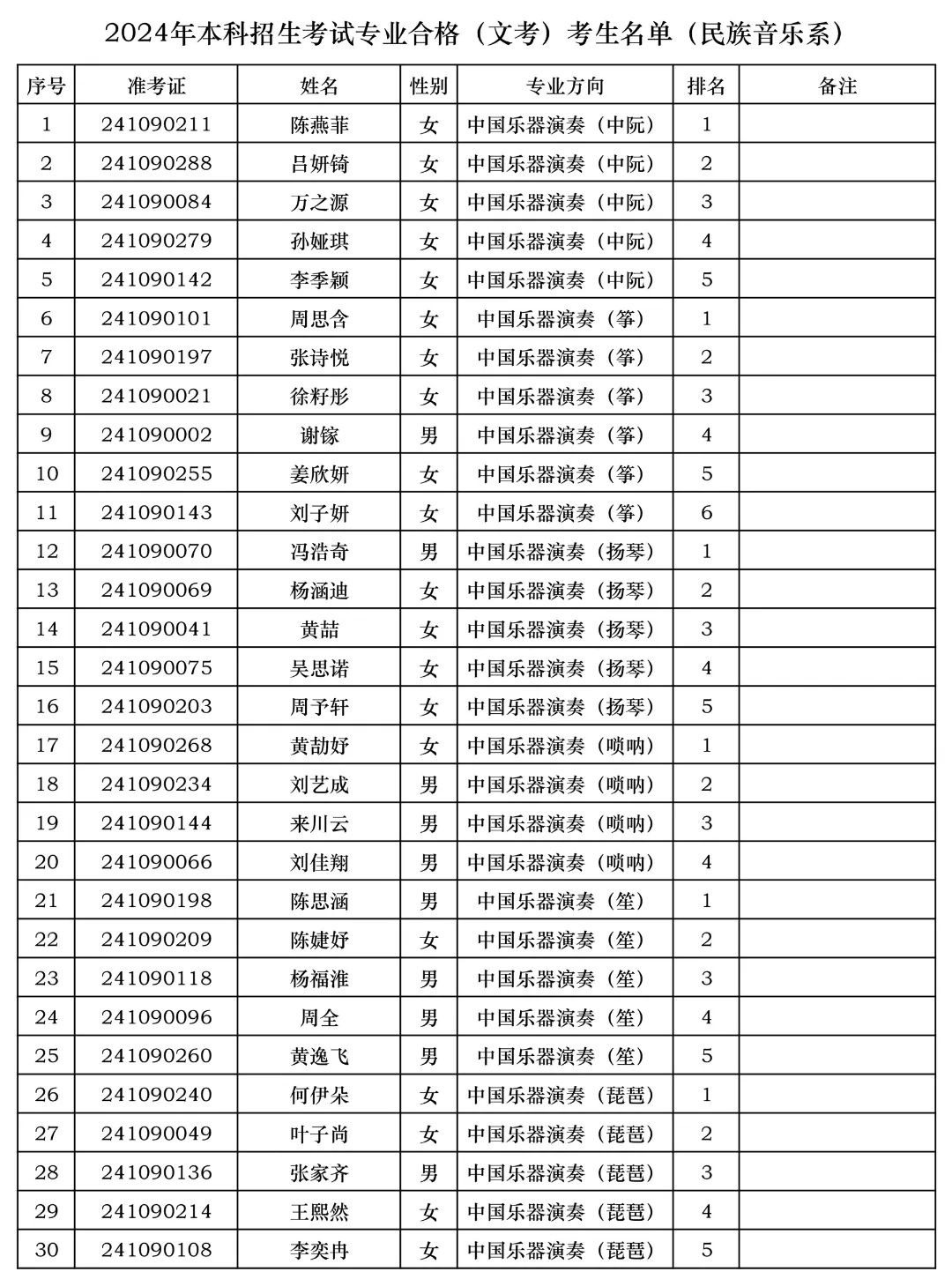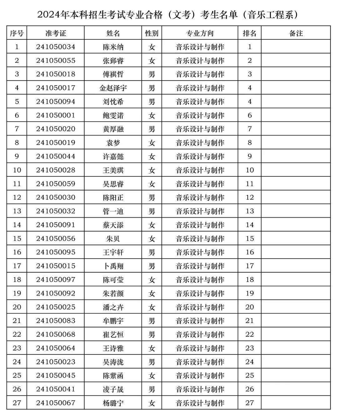 上海音乐学院2024年本科招生考试专业合格(文考)考生名单发布