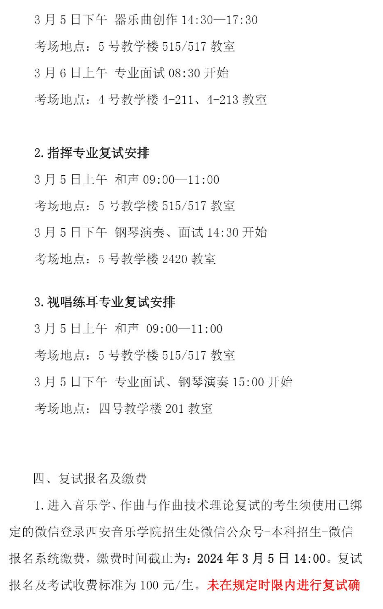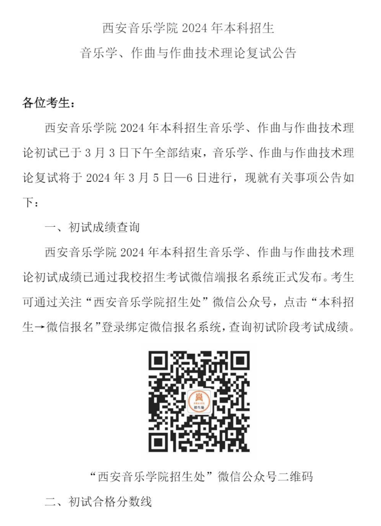 西安音乐学院2024年本科音乐学、作曲与作曲技术理论专业复试公告