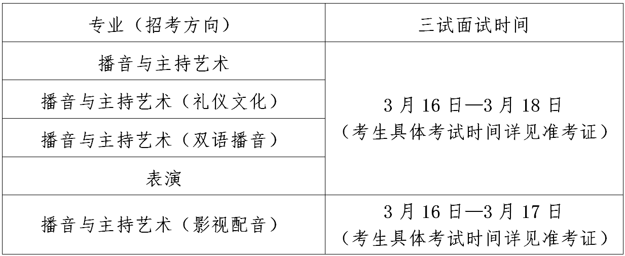1.播音与主持艺术及其招考方向、表演考试时间