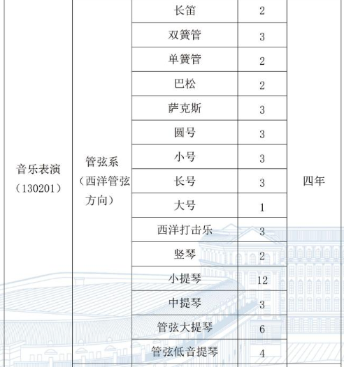 考学竞争压力教大的专业:声乐歌剧系(美声)、民族声乐系(民族唱法)、管弦系(长笛、小提琴、中提琴)、民乐系(竹笛、笙、民乐低音提琴、古琴)、钢琴系(钢琴)考学竞争压力较小的专业:管弦系(巴松、萨克斯、西洋打击乐、竖琴、管弦大提琴)、民乐系(二胡、板胡、三弦、扬琴、唢呐)、作曲系(作曲、指挥)考学竞争压力一般的专业:民族声乐系(通俗唱法)、管弦系(单簧管、双簧管、圆号、长号、小号、大号、管弦低音提琴)、民乐系(琵琶、柳琴、古筝、民族打击乐、民乐大提琴)、音乐学(音乐学理论)