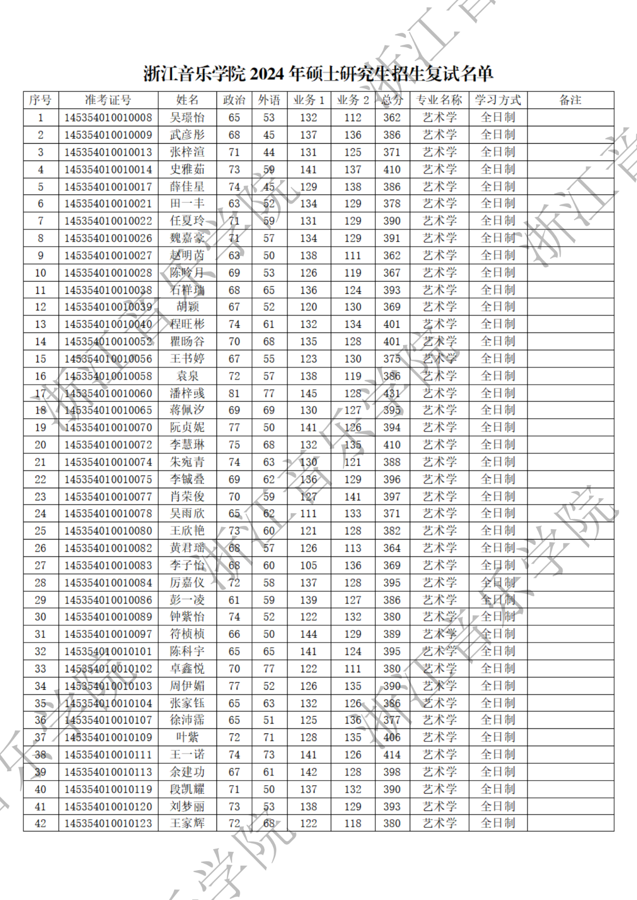 2024年浙江音乐学院硕士研究生招生复试通知