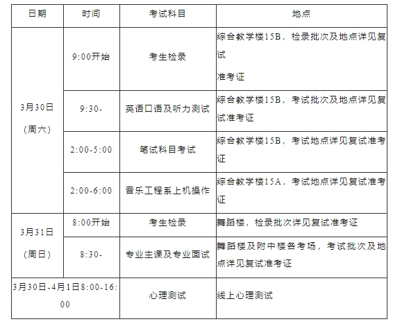 1.复试时间:2024年3月30日-31日,具体考试时间及场次详见考生本人复试准考证。2.复试地点:浙江省杭州市西湖区转塘街道浙音路1号浙江音乐学院。