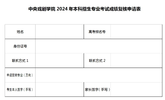 二、考生如对校考成绩有异议,可向我院申请复核,复核方式为:考生须将《2024年中央戏剧学院本科招生专业考试成绩复核申请表》(附件2)及考生本人身份证正反面扫描件(以JPG格式作为邮件附件)发送至邮箱zhaosheng@zhongxi.cn。申请时间为2024年4月23日上午8:30至4月25日下午17:00,逾期不予受理,我院将以邮件形式回复复核结果。成绩复核范围仅限登分、合分问题。