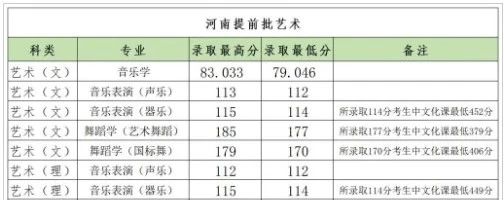 根据郑州大学发布的艺术提前批专业分数线得知,面向河南省生源,音乐表演专业录取分数线在112分-115分之间,其中音乐表演(器乐)专业最低114分的理科考生文化课最低也要考449分。如果想考上郑州大学,文化成绩至少要达到450分+,统考专业分数要达到112-116分。这都还是最低标准,实际考试难度可想而知。