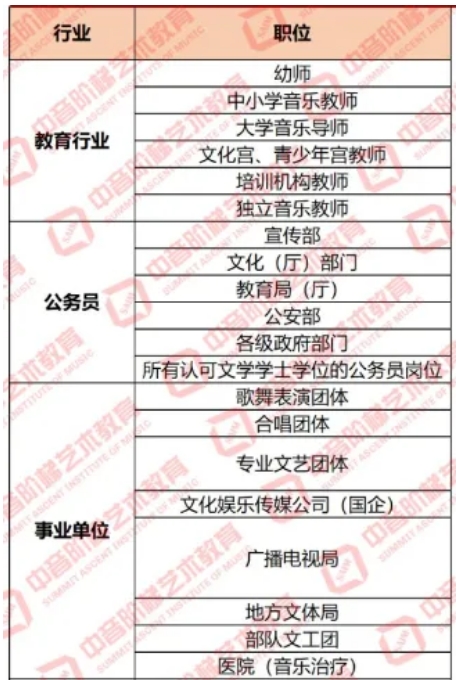 所涵盖的专业包括:教育行业、公务员、事业单位-广播电视局、文体娱乐、歌舞/合唱团等多个岗位。