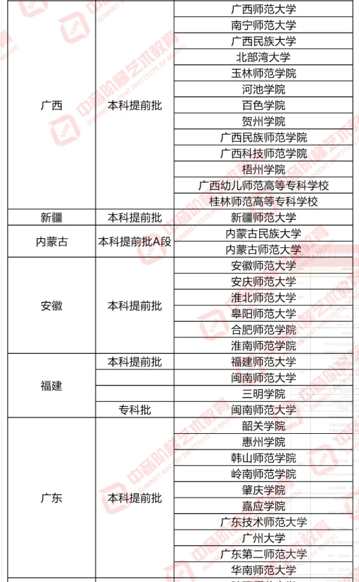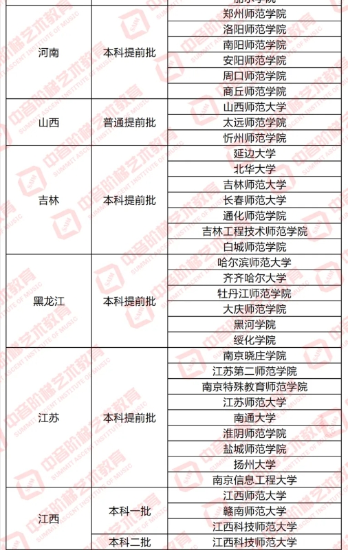 ●地方定向公费师范生:由各省教育厅委托本地师范高校培养,录取分数线更高,但将来都是定向分配到各地县城或者是乡镇地区就业。公费师范生一般招生规模较小,可以报考的院校数量也较少。国家师范生目前仅有教育部直属的6所师范院校:北京师范大学、华东师范大学、华中师范大学、东北师范大学、陕西师范大学以及西南大学。其次,公费师范生在校期间享受的政策福利是其他音乐生没有的,毕业之后的人生方向基本是确定的,一旦违约需要支付的代价也会很大。●另一种是自费师范生。他们和普通高校大学生一样,在校期间没有任何政策支持和优惠,学费和住宿费需要自己支付,毕业后同样需要通过参加教师招聘考试成为编制教师。●还有一种是比较特殊的委培师范生。不属于公费,也不属于自费,是一种特殊的师范生类型,具体特点与普通师范生和公费师范生有所不同,具体情况依赖于所在省份的政策。自费师范生是目前招生范围最大,招生名额最多,覆盖省份最多的,音乐生毕业之后不受限制,可根据自身条件选择适合的岗位和编制。