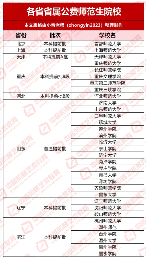 24年教育部颁布新政策:延迟退休和调整教师编制规模,社会热门话题再次将教师编制的“铁饭碗”含金量再次升高,音乐教师编制的热度也一升再升,也吸引了更多音乐生投入教师考编的“热潮”当中。大部分音乐生和家长选择教师岗位因为工作稳定、收入与公务员持平、还有超长假期等政策福利。为方便音乐生理解公费师范生,小音老师将艺术类专业的国家公费师范生、省属公费师范生等内容整理出来,供大家提前了解、选择院校!