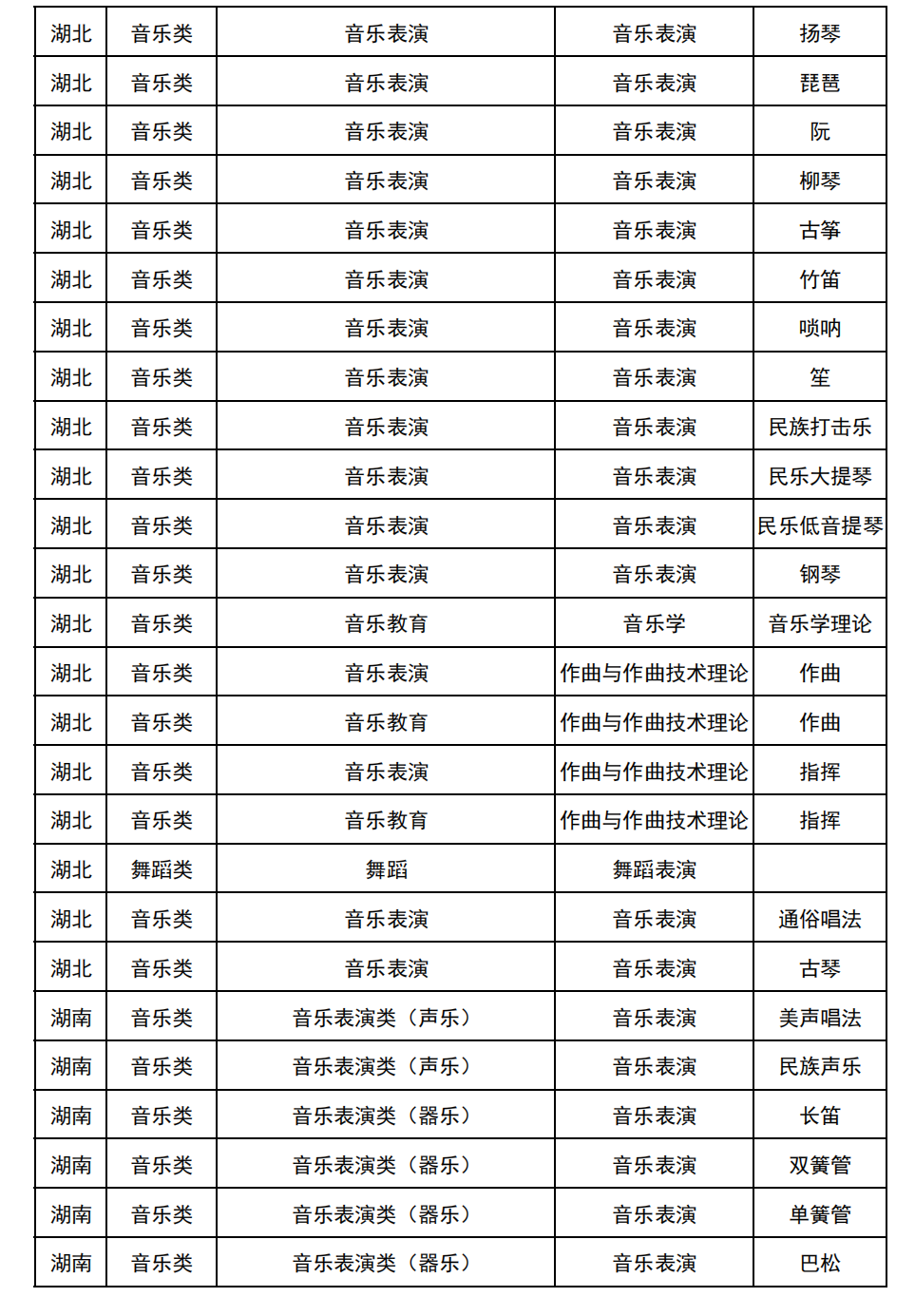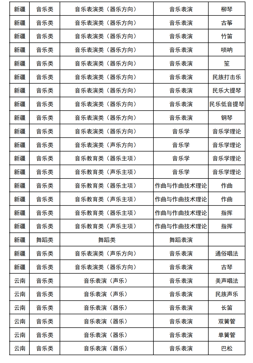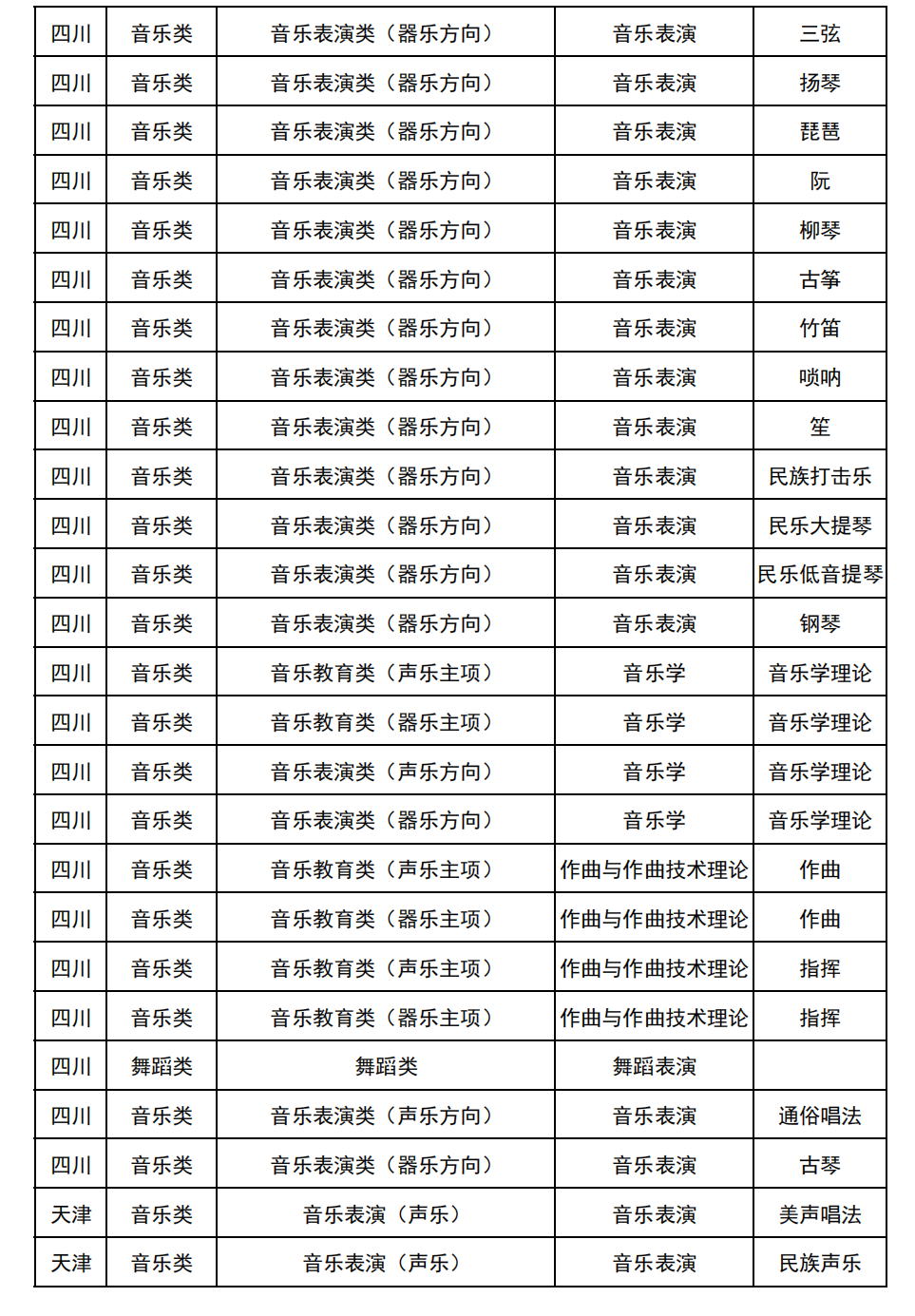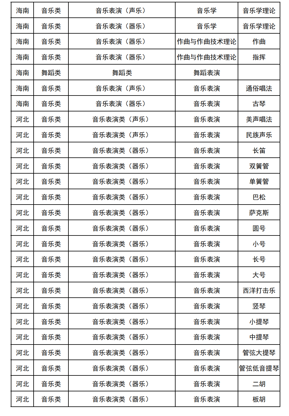哈尔滨音乐学院2025年校考与统考各科目子科目对照表