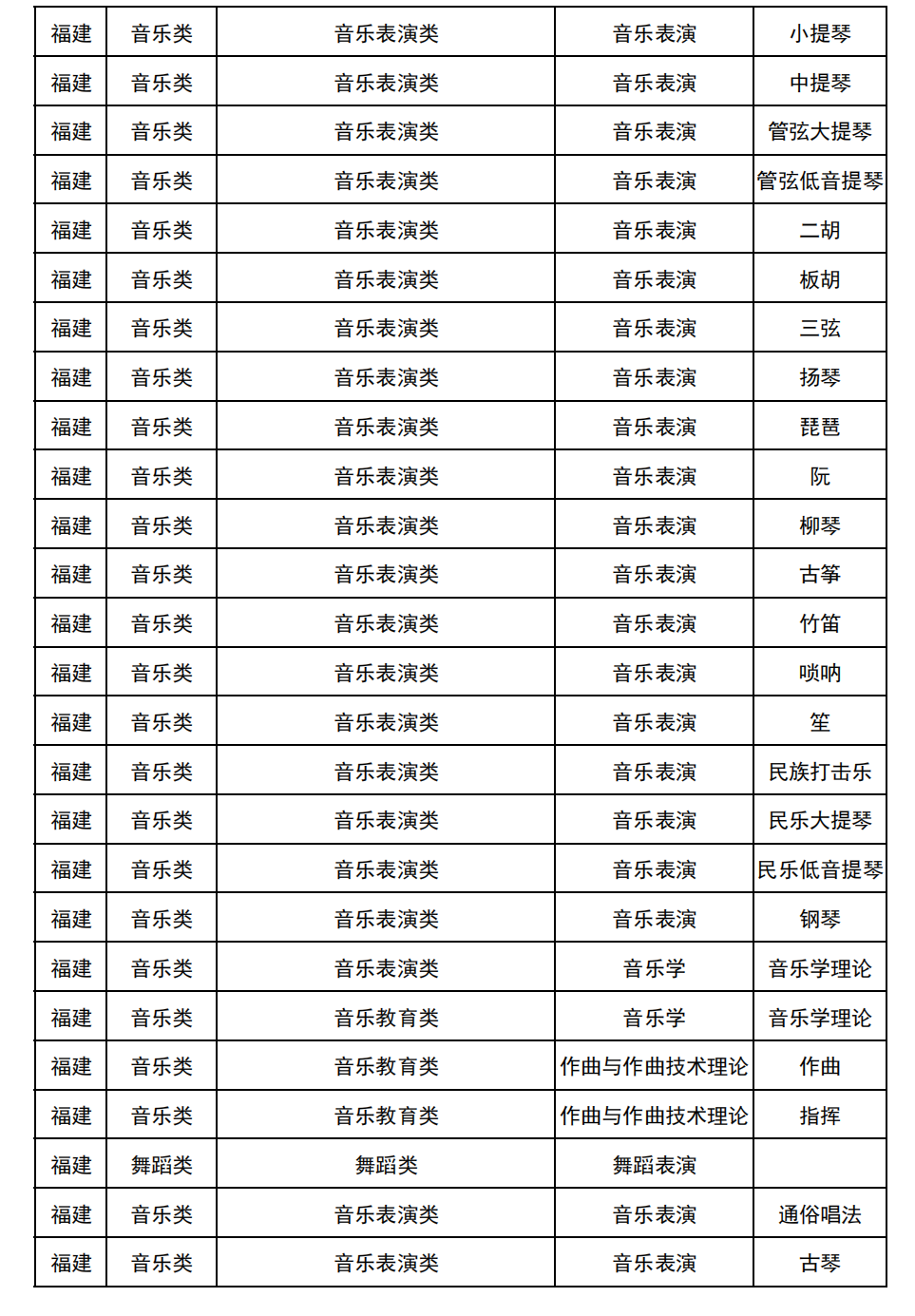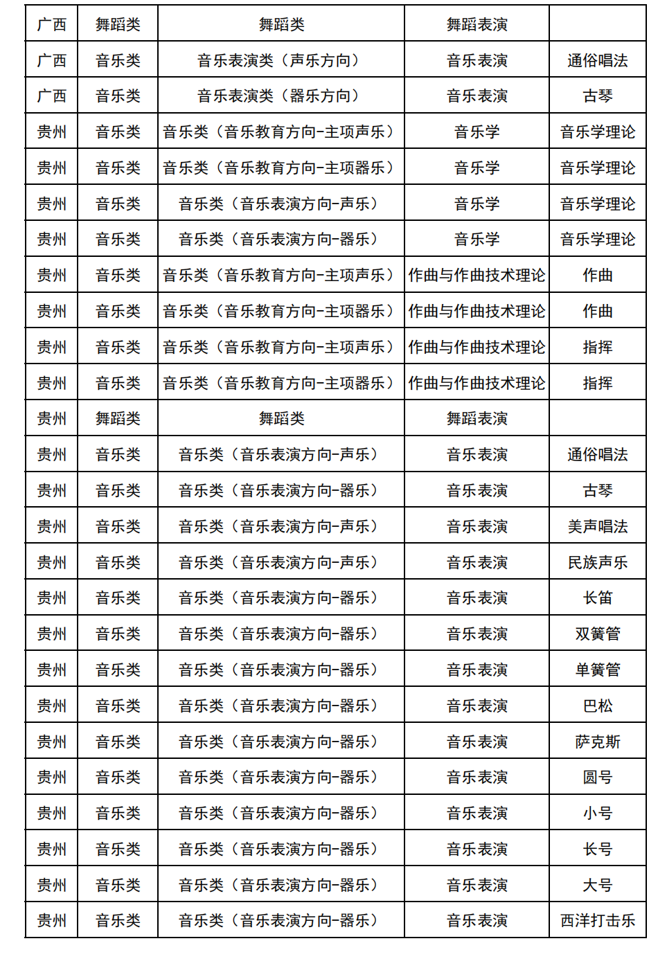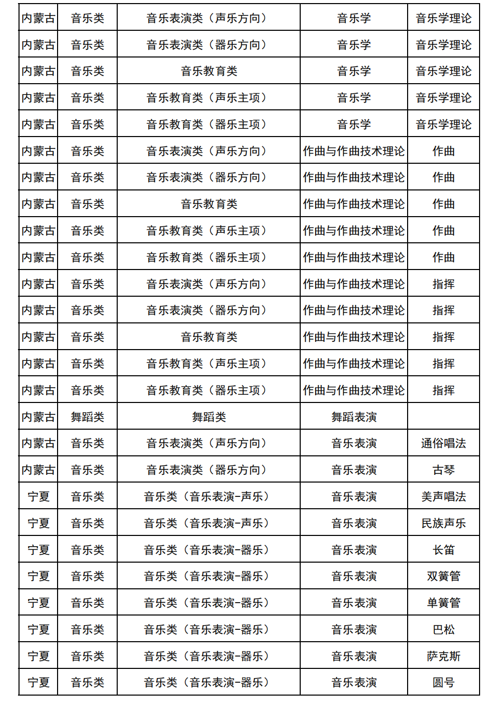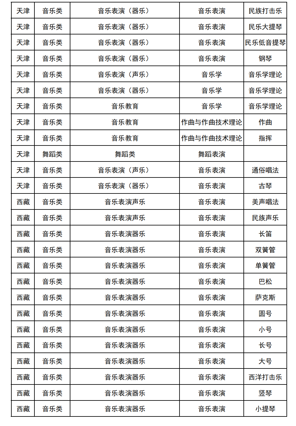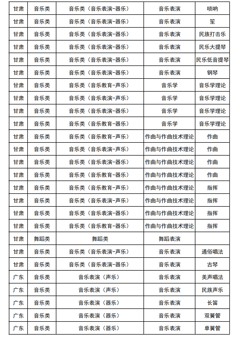哈尔滨音乐学院2025年校考与统考各科目子科目对照表