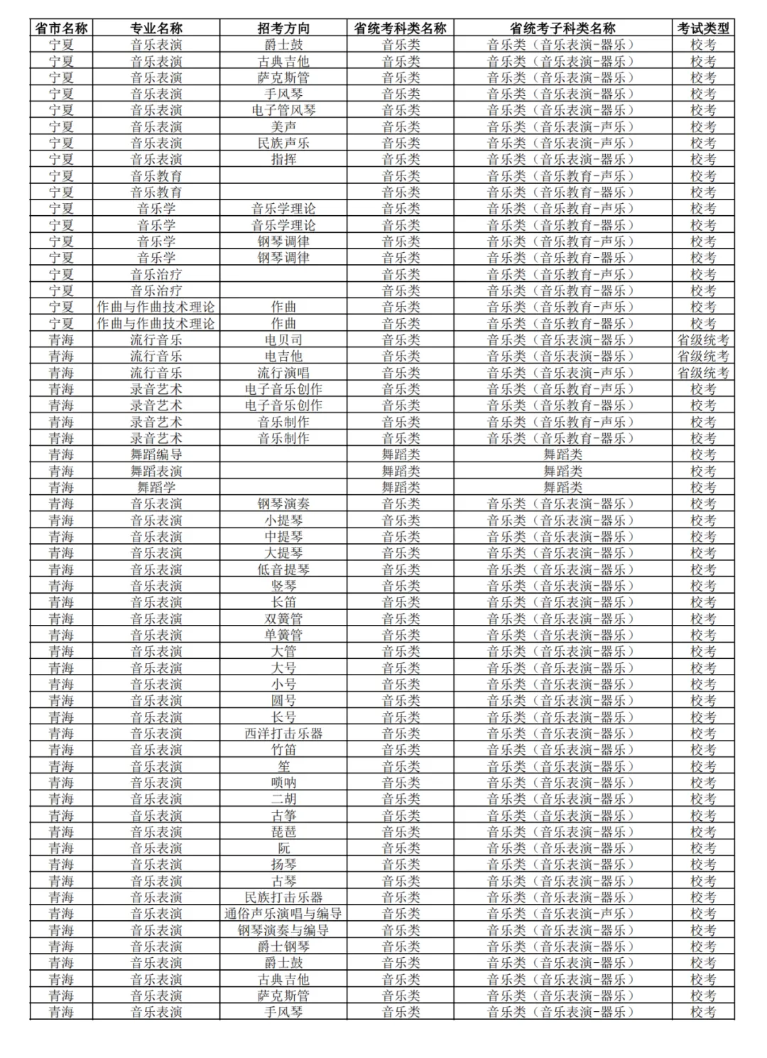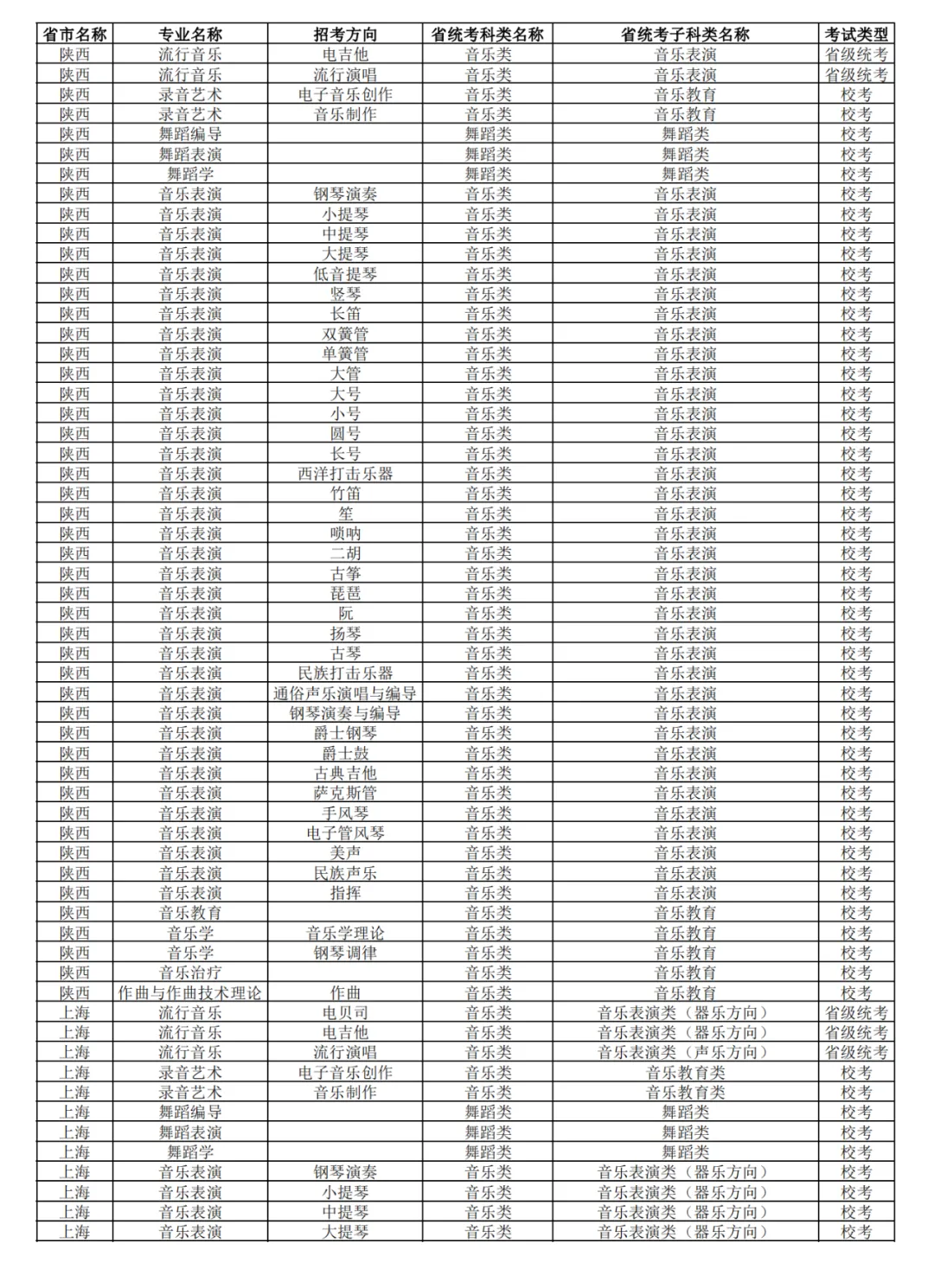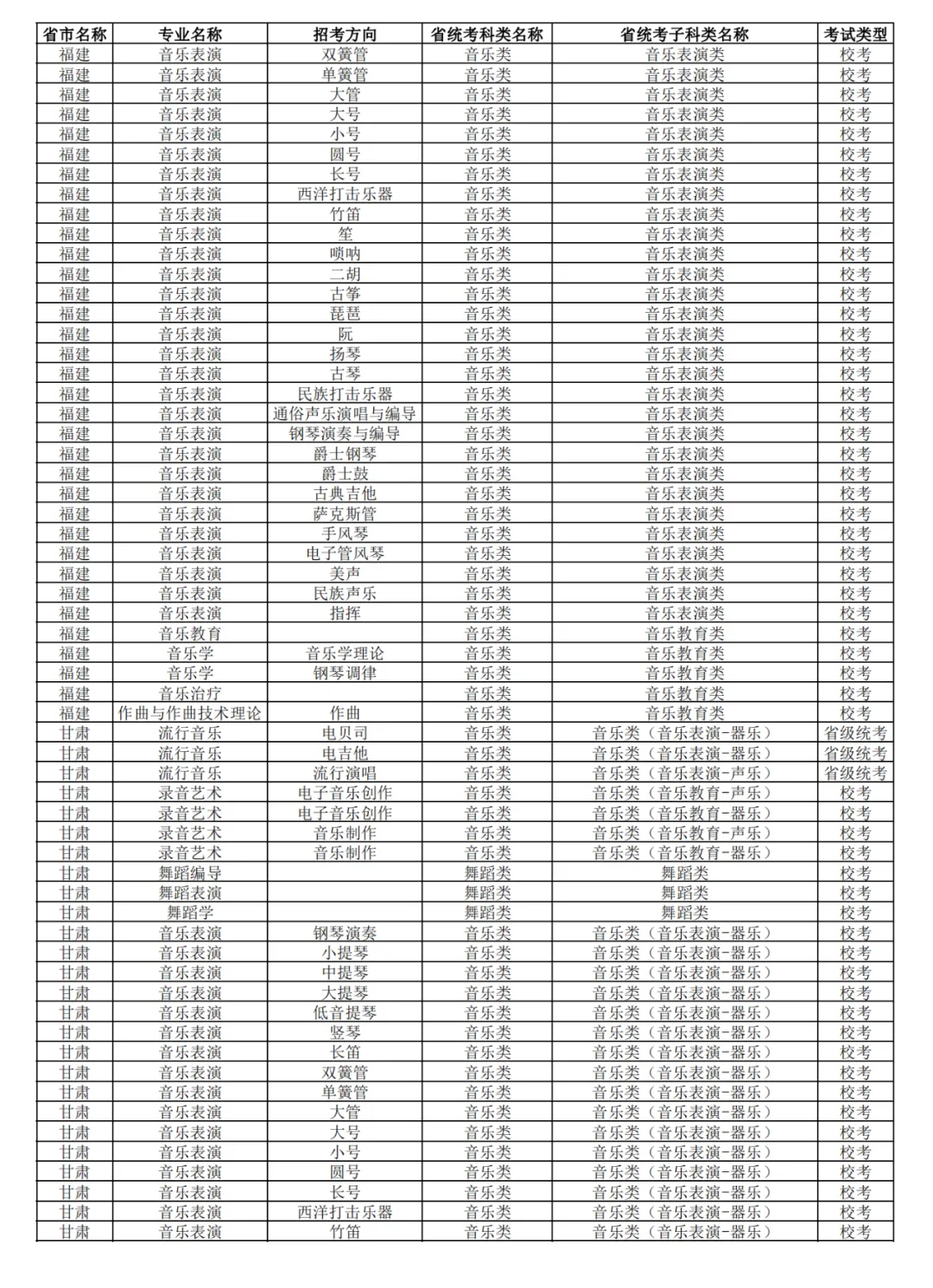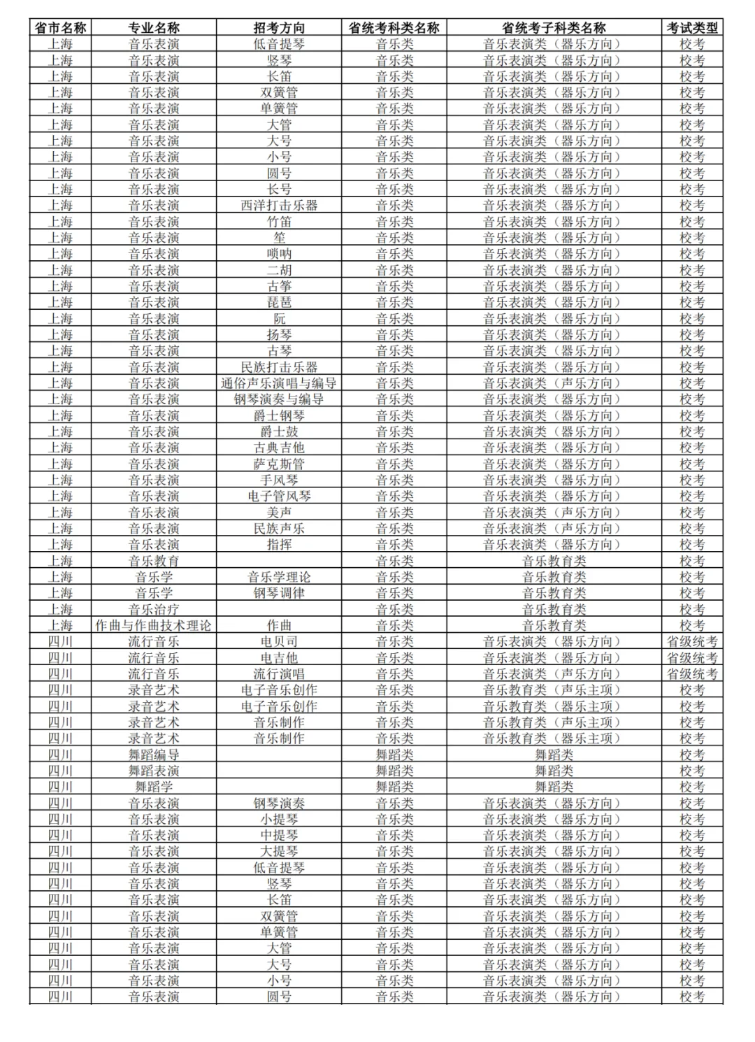 武汉音乐学院2025年本科招生专业和各省统考子科类对照表