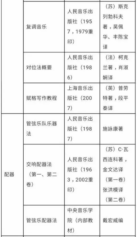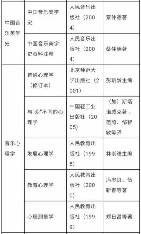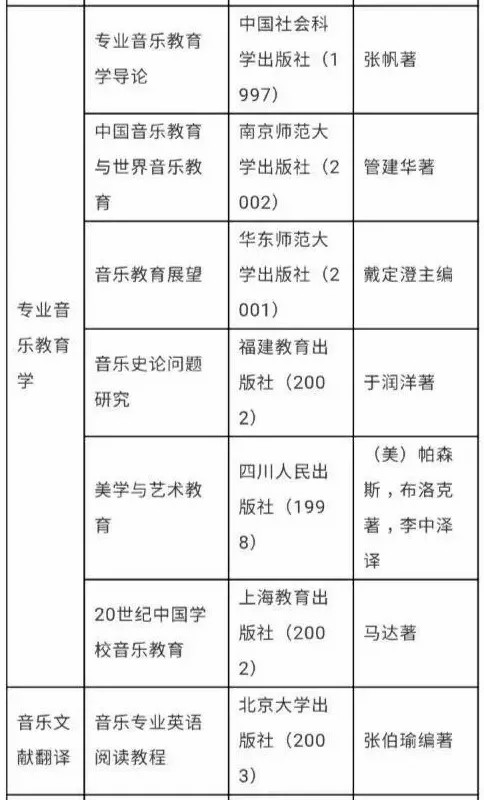各省份院校通用的【音乐学专业】考研参考书目经典总结