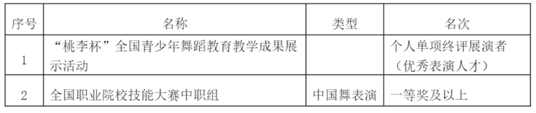 (2)舞蹈编导、舞蹈表演、舞蹈学专业 I 类破格奖项如下: