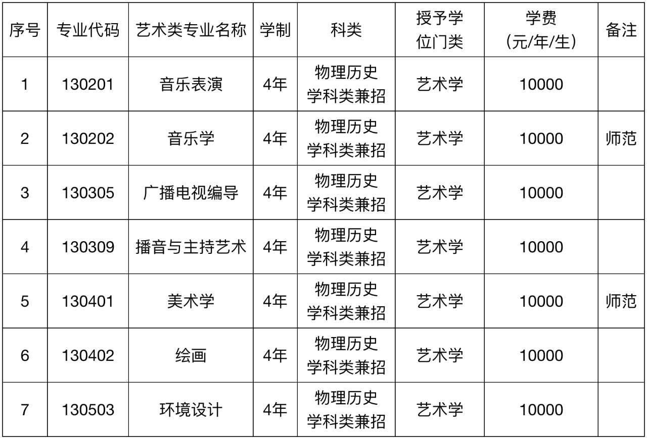 美术学(师范)、绘画、环境设计、音乐学(师范)、音乐表演、播音与主持艺术专业,各专业的录取批次、投档方式,均以所在省招考办公布为准。